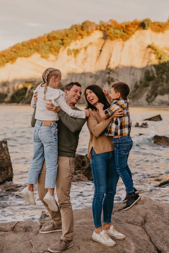 Za fotografiranje na prostem je magični čas t.i. **”zlata ura”** – ura pred sončnim zahodom, ko je svetloba mehka, topla in vsem laska. Če so otroci takrat že preveč utrujeni, se lahko dogovorimo za jutranje fotografiranje takoj po zajtrku, ko je energija na vrhuncu. Kot poudarja portal Brides (ki pokriva tudi družinske portrete), je dobra svetloba 70 % uspeha fotografije.